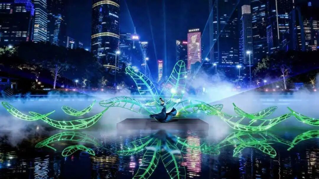 本届灯光节主会场共展出36组作品,通过光影演艺、AIGC技术、互动投影等科技手段,融入十五运视觉元素、轻演艺表演等形式,强化“激情全运会,活力大湾区”的全运主题,为十五运会的宣传推广提升城市氛围。