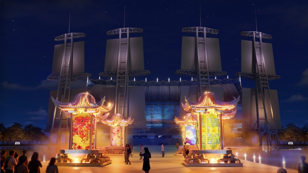 广州国际灯光节作品《月秀亭阁》效果图。
