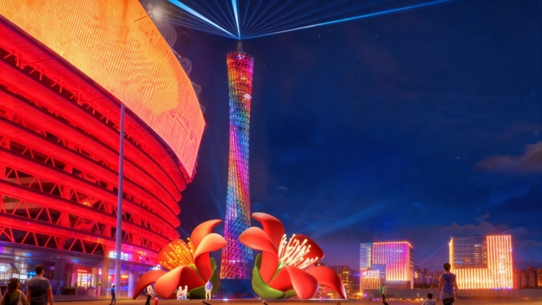 广州国际灯光节作品《红棉花映塔》效果图。
