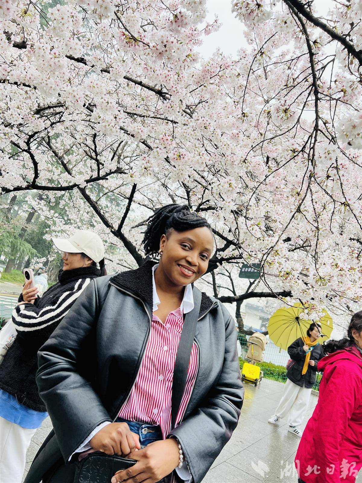 今年春季,娜塔莎来到武汉大学赏樱花。(受访者供图)
